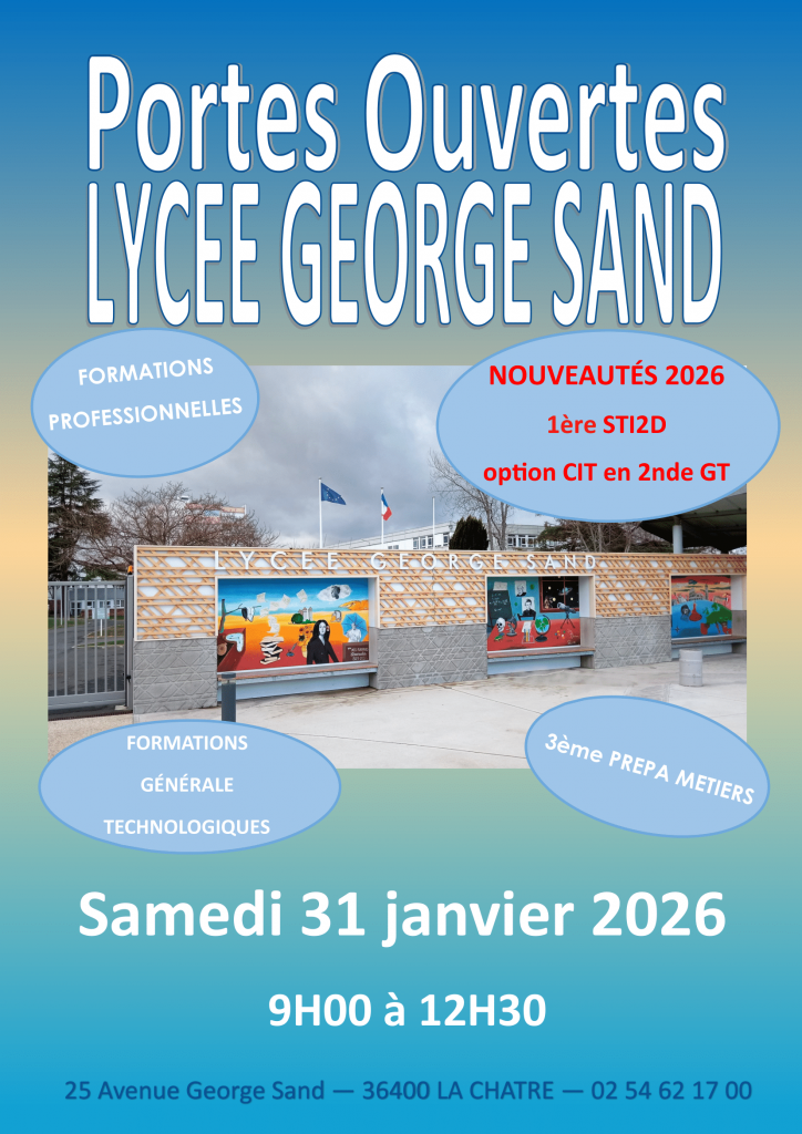 Le lycée vous accueillera samedi 31 janvier prochain de 9h à 12h30 pour vous faire découvrir ses locaux, ses formations, ses projets … et ses nouveautés ! Comme l’ouverture de la série STI2D en septembre.